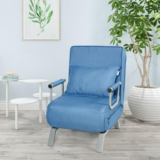 Folding 5 Position Convertible Sleeper Bed Armchair Lounge Couch w/Pillow-Blue